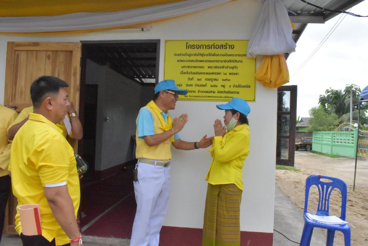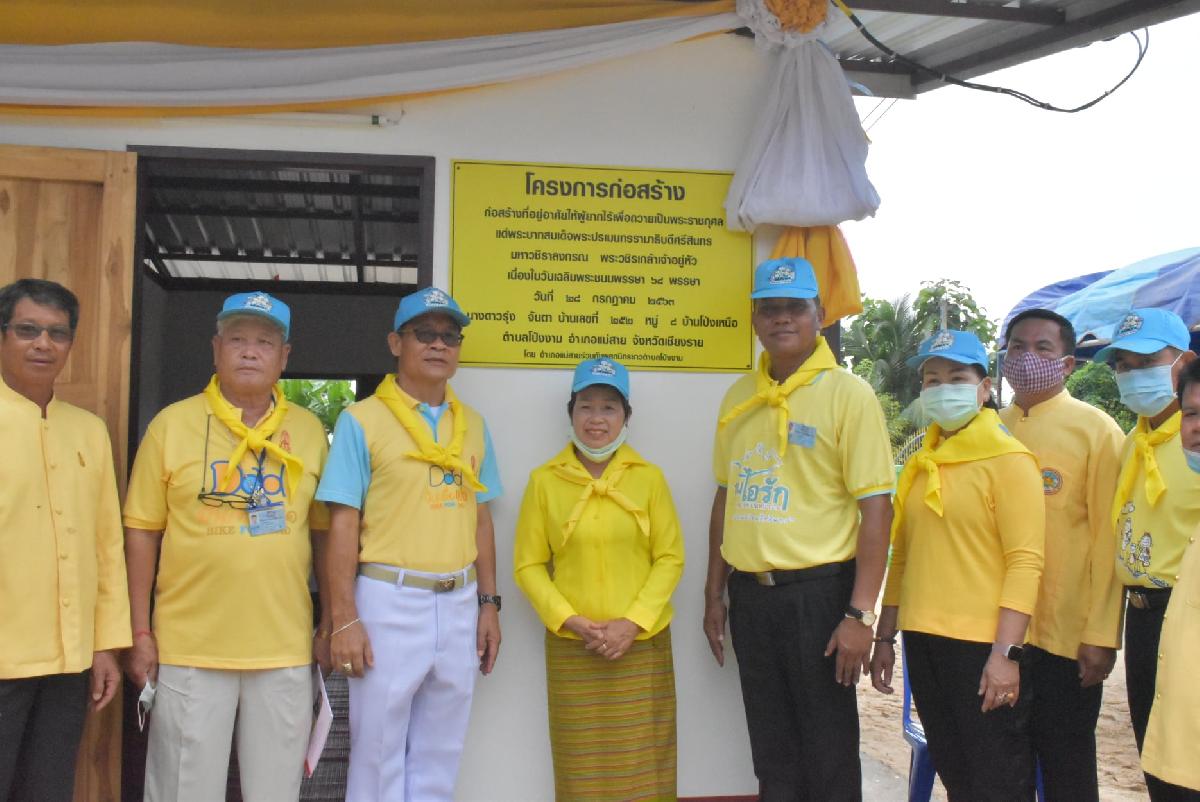 ในการนี้ นายประสงค์ หล้าอ่อน นายอำเภอแม่สาย ให้เกียรติมาเป็นประธานในพิธีในการส่งมอบบ้าน ตามโครงการก่อสร้างที่อยู่อาศัยให้ผู้ยากไร้เพื่อถวายเป็นพระราชกุศลแด่พระบาทสมเด็จพระปรเมนทรรามาธิบดีศรีสินทรมหาวชิราลงกรณ์ พระวชิรเกล้าเจ้าอยู่หัว โดยมีนายแดนชัย บุลมาก นายกองค์การบริหารส่วนตำบลโป่งงาม เป็นผู้กล่าวรายงานถึงวัตถุประสงค์และความเป็นมาของโครงการฯ ซึ่งนายประสงค์ หล้าอ่อน นายอำเภอแม่สายได้มอบพระบรมฉายลักษณ์ ฯ ให้กับนางดาวรุ่ง จันตา โดยมีนายแดนชัย บุลมาก นายกองค์การบริหารส่วนตำบลโป่งงาม พร้อมด้วย หน่วยงานภาครัฐ , ภาคเอกชน , กลุ่มจิตอาสา และประชาชนโดยทั่วไป รวมกิจกรรมดังกล่าว จำนวนทั้งสิ้น 105 คน ประกอบด้วยกลุ่มจิตอาสา จำนวน 64 คน และประชาชนทั่วไป จำนวน 41 คน ทั้งนี้นายแดนชัย บุมลมาก นายกองค์การบริหารส่วนตำบลโป่งงาม ได้มอบเกียรติบัตรให้กับผู้ที่สนับสนุนกิจกรรมตามโครงการฯ จนเป็นที่แล้วเสร็จ