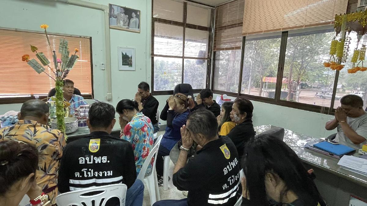 กลุ่มอาสาสมัครป้องกันภัยฝ่ายพลเรือน(อปพร.)ตำบลโป่งงาม ได้เข้ารดน้ำดำหัวนายกอบต.โป่งงาม ตามกิจกรรมป๋าเวณีปี๋ใหม่เมือง ปี 2567
