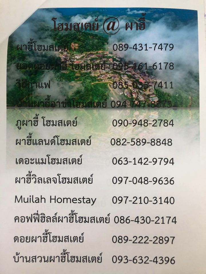 1.ผาฮี้โฮมสเตย์ /กาแฟผาฮี้ เบอร์ 089-4317479 พ่อหลวงอรัญ