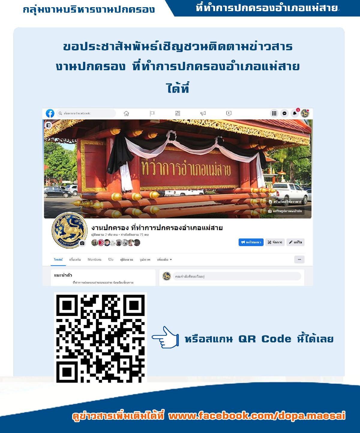ได้ที่ FB: www.facebook.com/dopa.maesai หรือสแกนตามที่อยู่ด้านล่าง