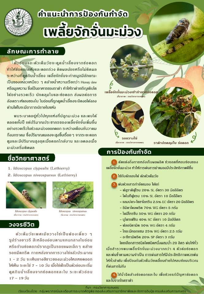 ประชาสัมพันธ์ จากสำนักงานเกษตรอำเภอแม่สายเรื่อง คำแนะนำการป้องกันกำจัดเพลี้ยจักจั่นมะม่วง