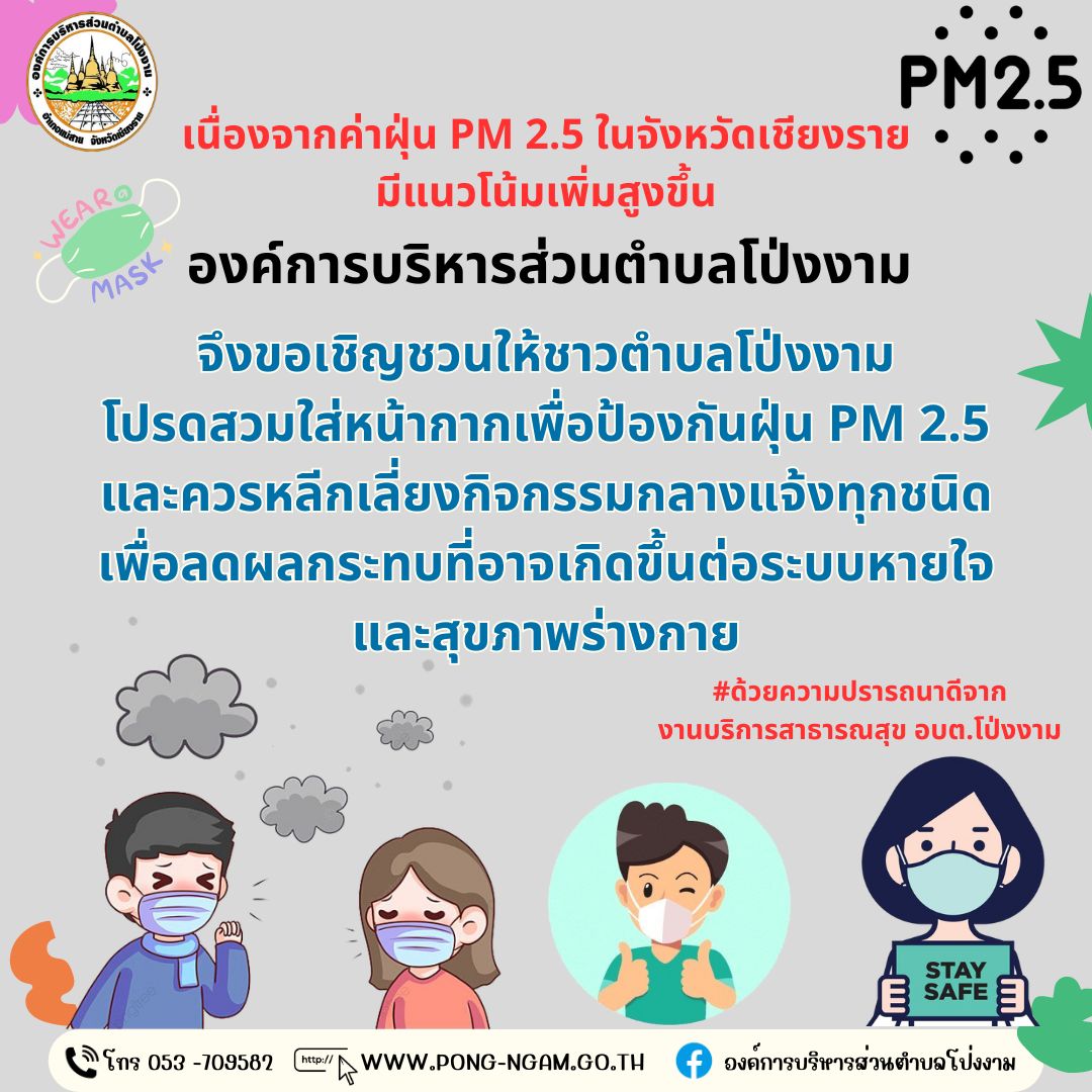 ขอเชิญชวนให้ชาวตำบลโป่งงามโปรดสวมใส่หน้ากากเพื่อป้องกันฝุ่น PM 2.5