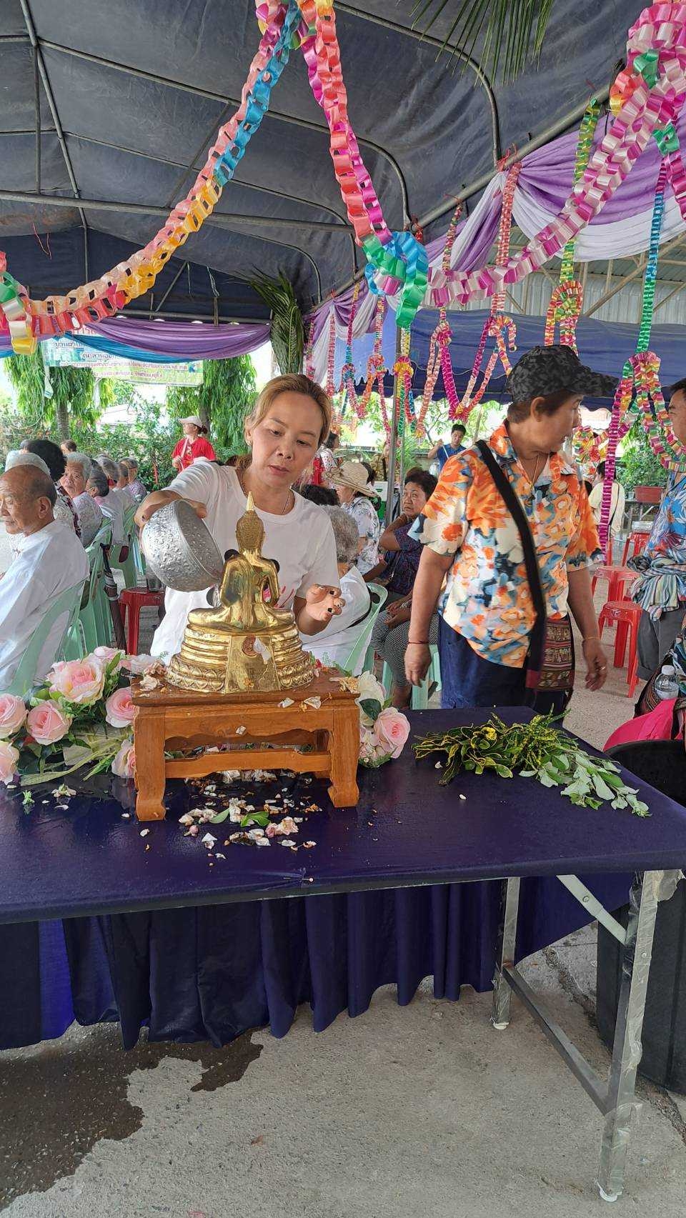 โครงการส่งเสริมประเพณีปีใหม่เมือง ประจำปีงบประมาณ 2567 กิจกรรมป๋าเวณีรดน้ำดำหัว ประจำปี 2567 ณ ลานอาคาร 5 ชั้น บ้านถ้ำใหม่ ม.4