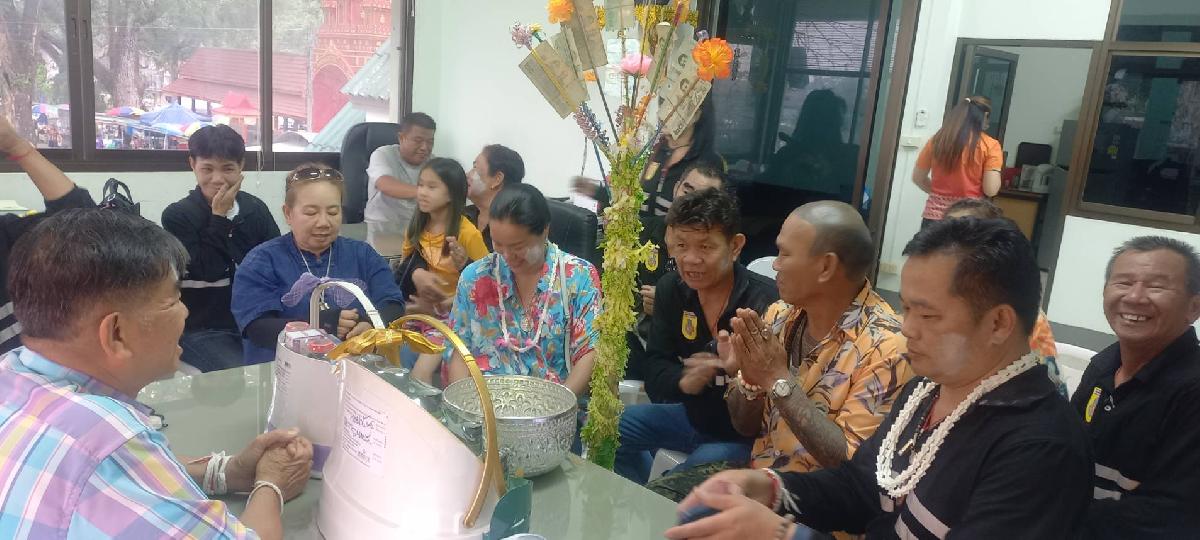 กลุ่มอาสาสมัครป้องกันภัยฝ่ายพลเรือน(อปพร.)ตำบลโป่งงาม ได้เข้ารดน้ำดำหัว นายอำนาจ สิทธิมงคล นายกอบต.โป่งงาม ตามกิจกรรมป๋าเวณีปี๋ใหม่เมือง ปี 2567