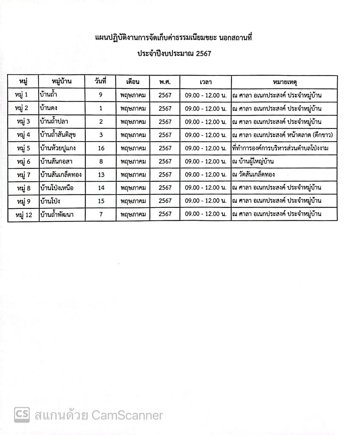 ประชาสัมพันธ์ เรื่อง การออกบริการรับชำระค่าธรรมเนียมขยะนอกสถานที่ ประจำเดือน พฤษภาคม 2567 ตั้งแต่เวลา 09.00 -12.00 น. สถานที่ตามที่แนบมาด้วยค่ะ