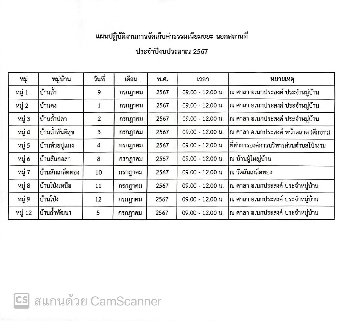 ประชาสัมพันธ์ เรื่อง การออกบริการรับชำระค่าธรรมเนียมขยะนอกสถานที่ ประจำเดือน กรกฎาคม 2567 ตั้งแต่เวลา 09.00 -12.00 น. สถานที่ตามที่แนบมาด้วยค่ะ