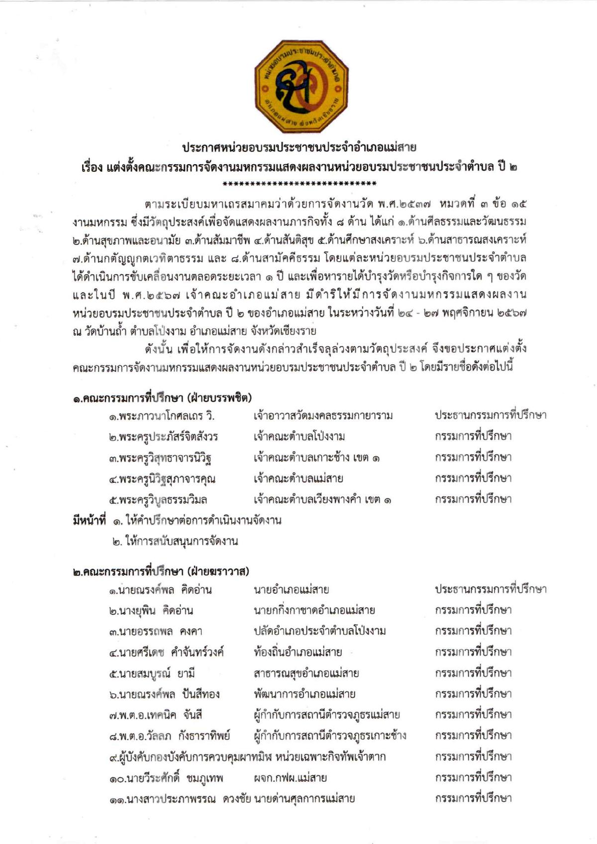 #ประกาศหน่วยอบรมประชาชนประจำอำเภอแม่สาย