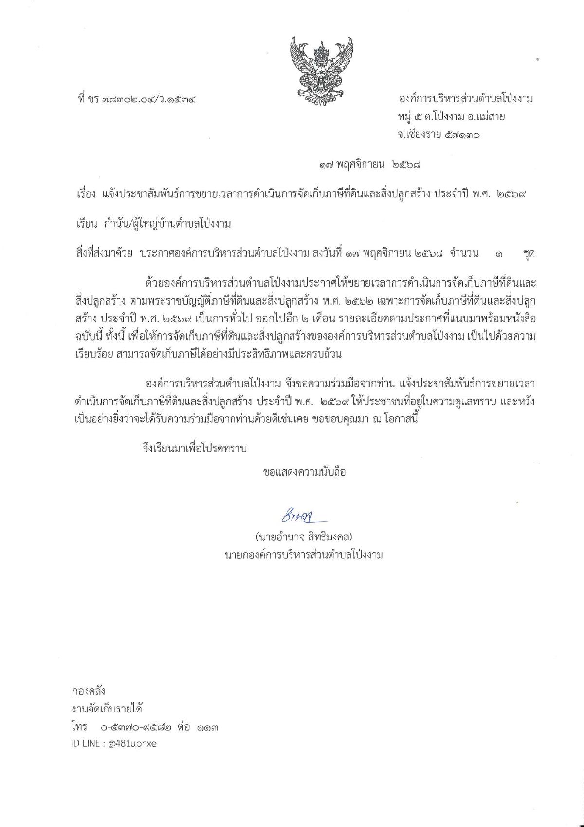 ประชาสัมพันธ์ จาก กองคลัง อบต.โป่งงาม