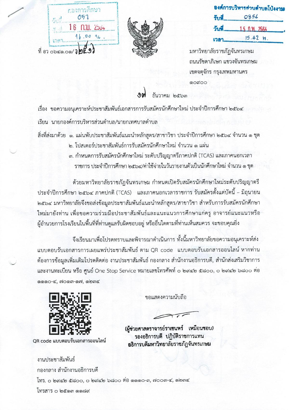 ประชาสัมพันธ์ มหาวิทยาลัยราชภัฎจันทรเกษม กำหนดเปิดรับนักศึกษาใหม่ ระดับปริญญาตรี ประจำปีการศึกษา 2564 ภาคปกติ (TCAS) และภาคนอกเวลาราชการ รับสมัครตั้งแต่บัดนี้ - มิถุนายน 2564