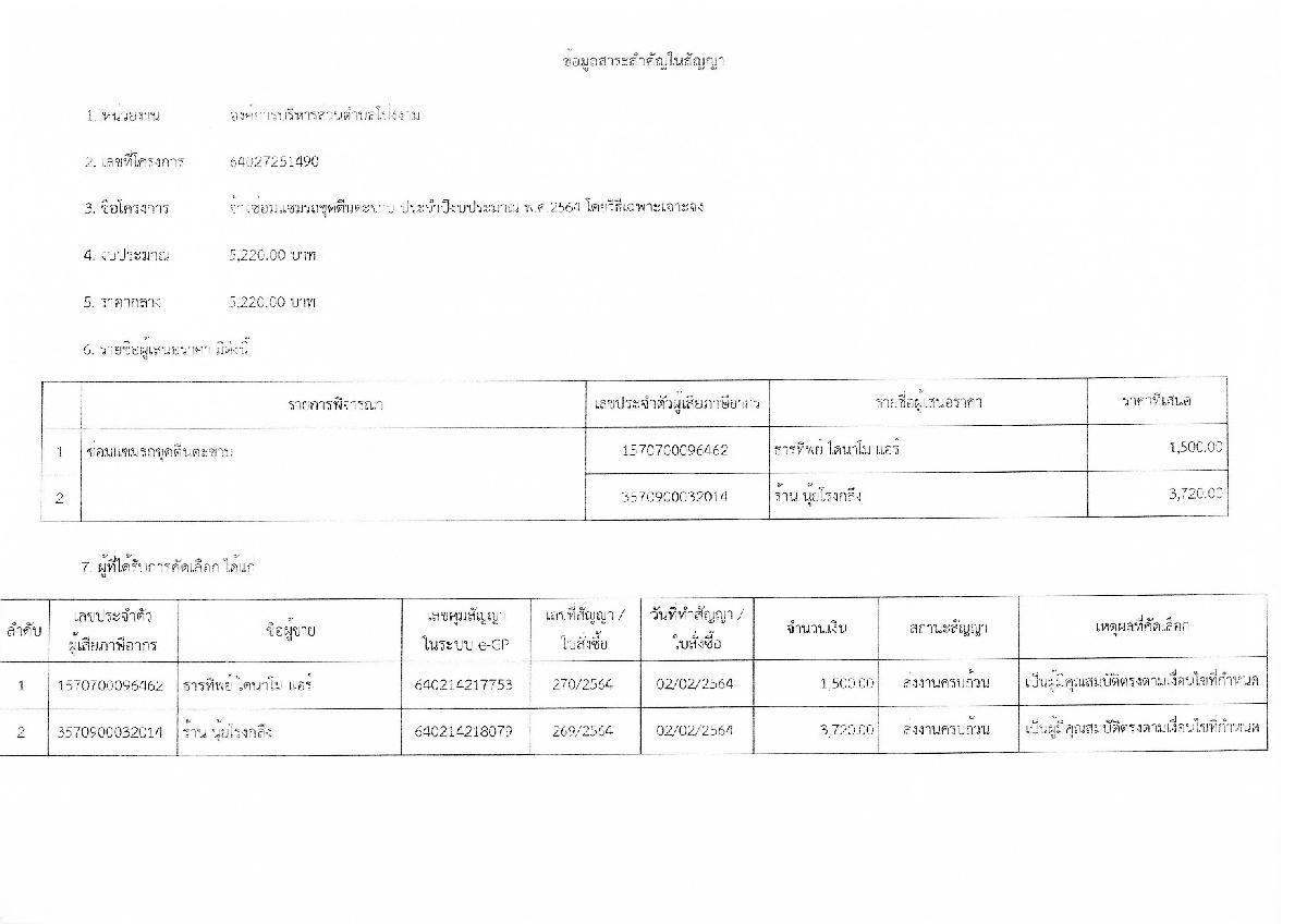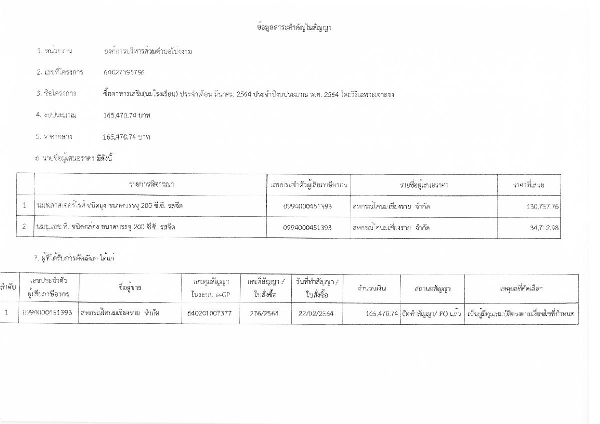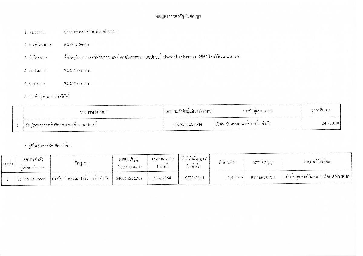 รายงานสรุปผลการพิจารณาในการจัดซื้อจัดจ้างในรอบเดือน ประจำเดือน กุมภาพันธ์ พ.ศ.2564