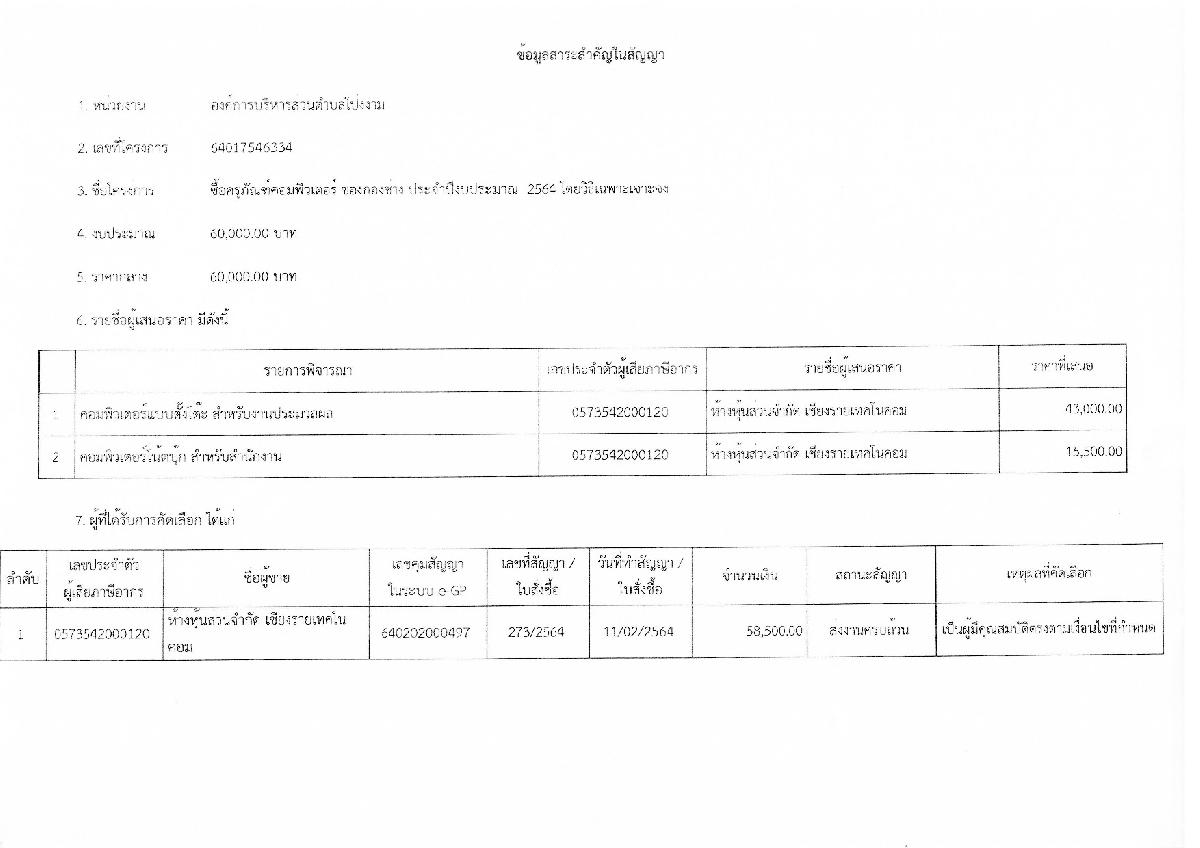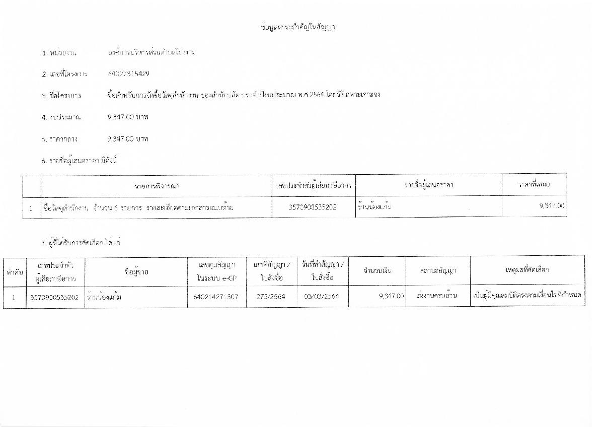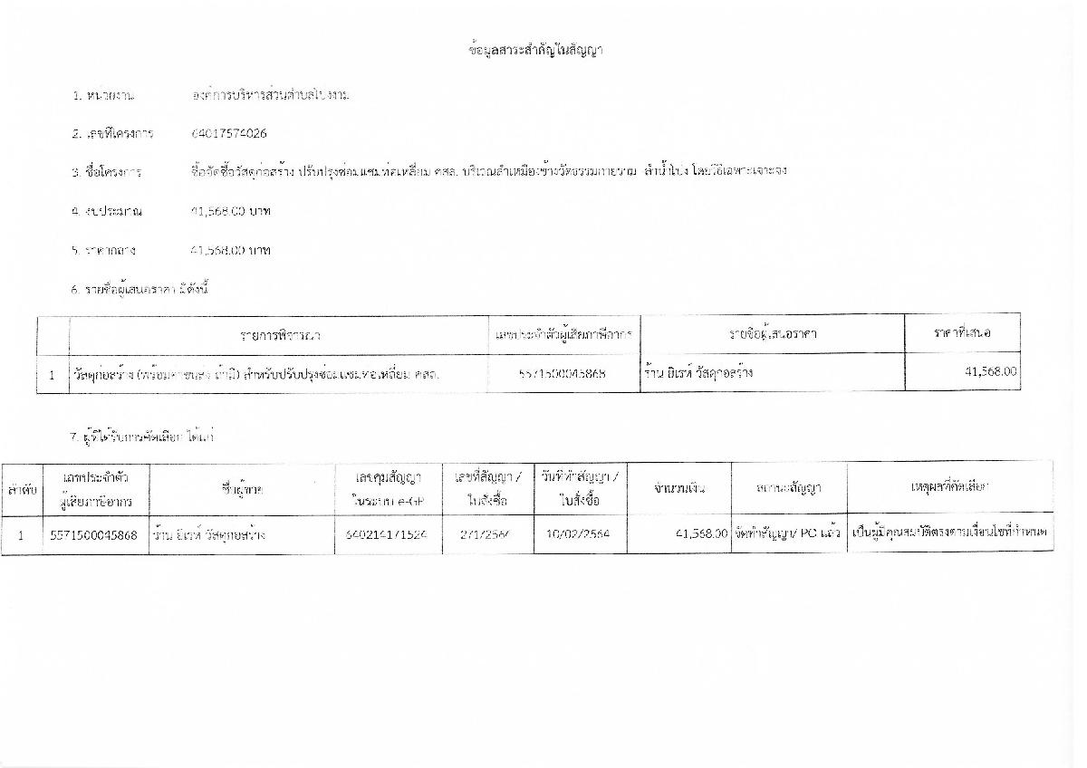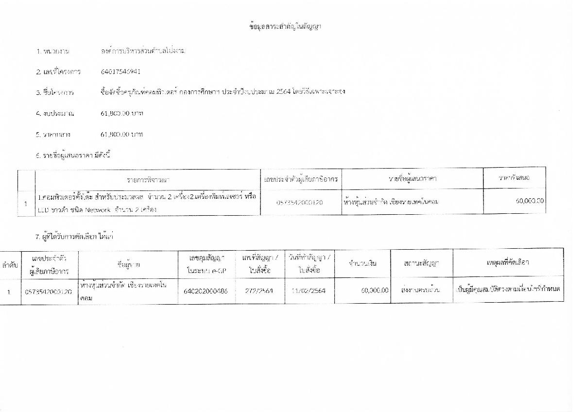รายงานสรุปผลการพิจารณาในการจัดซื้อจัดจ้างในรอบเดือน ประจำเดือน กุมภาพันธ์ พ.ศ.2564