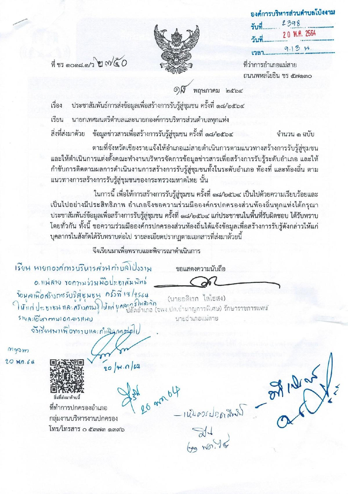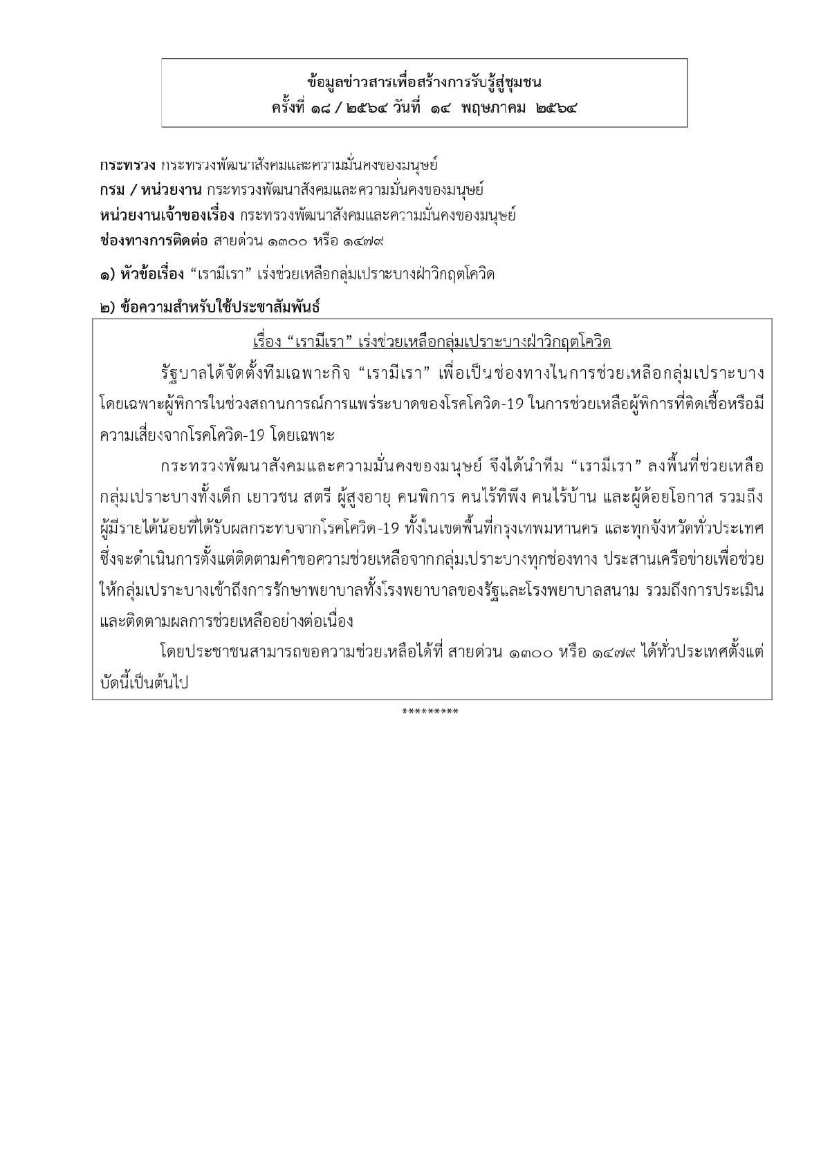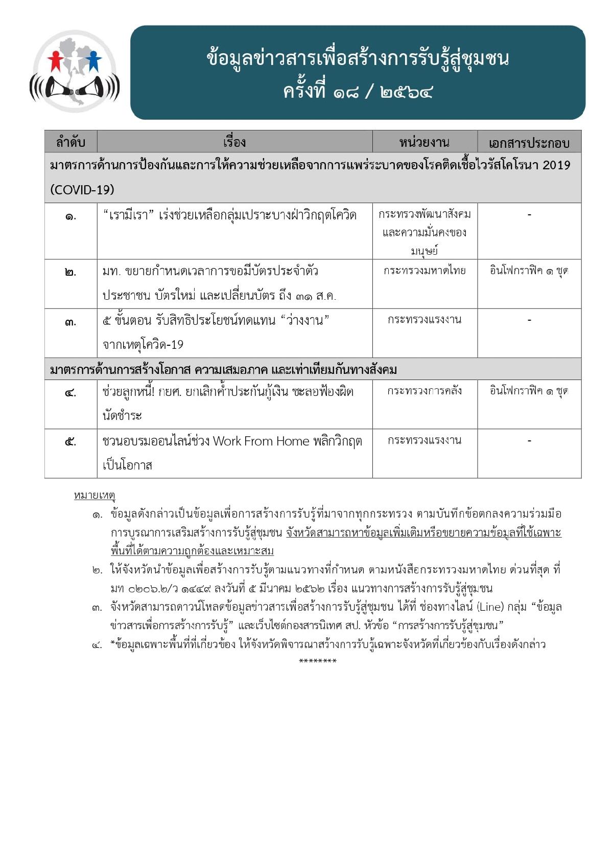 ประชาสัมพันธ์ข้อมูลเพื่อสร้างการรับรู้สู่ชุมชน 18/2564