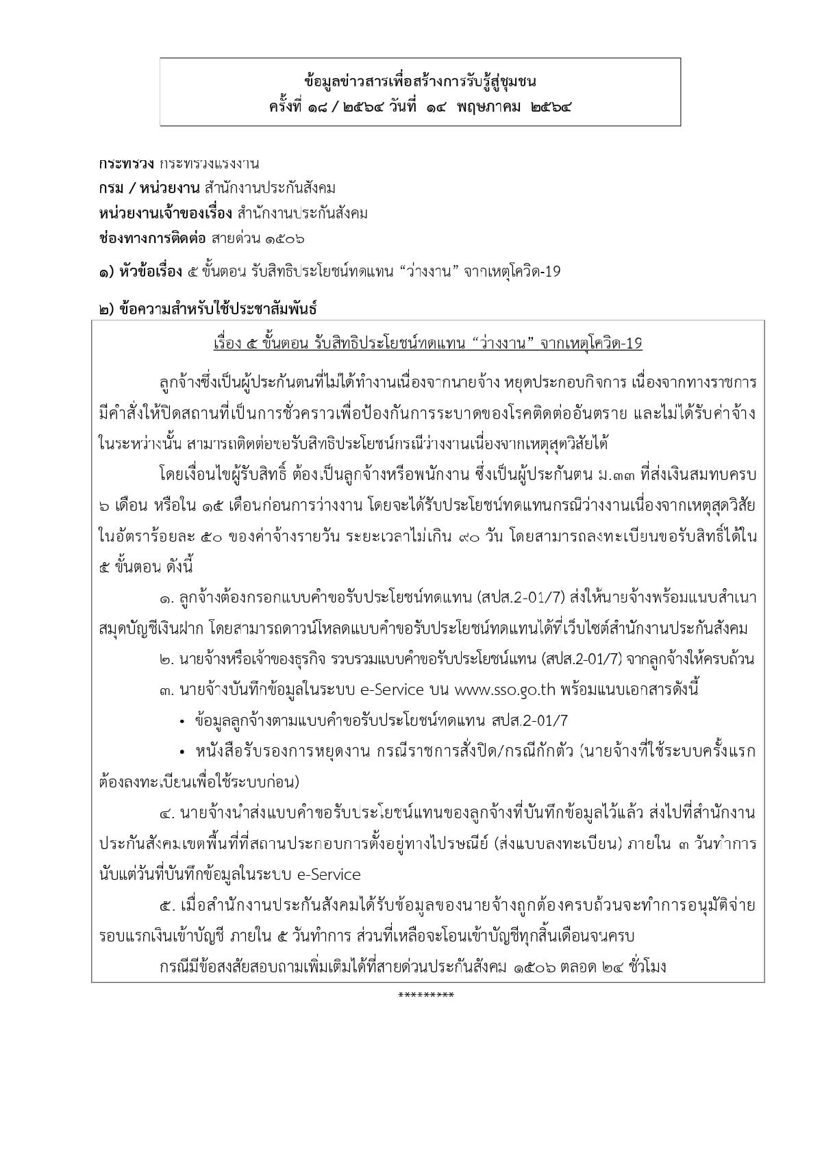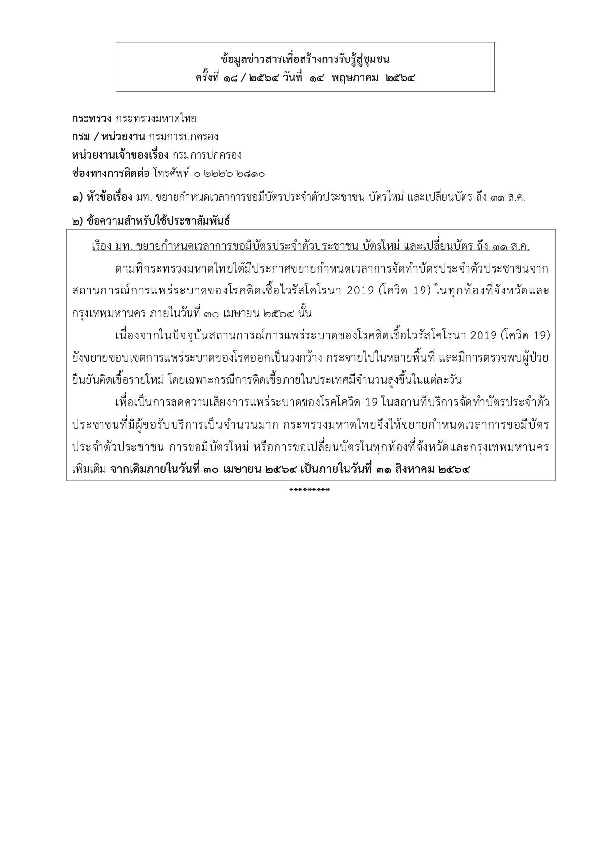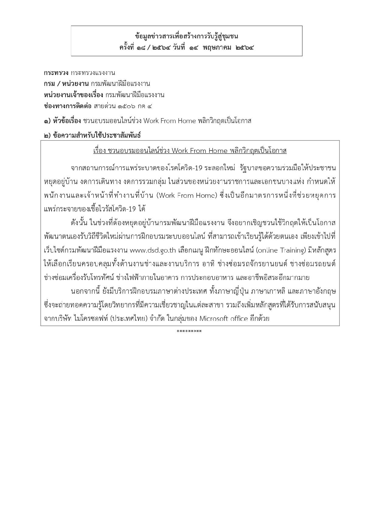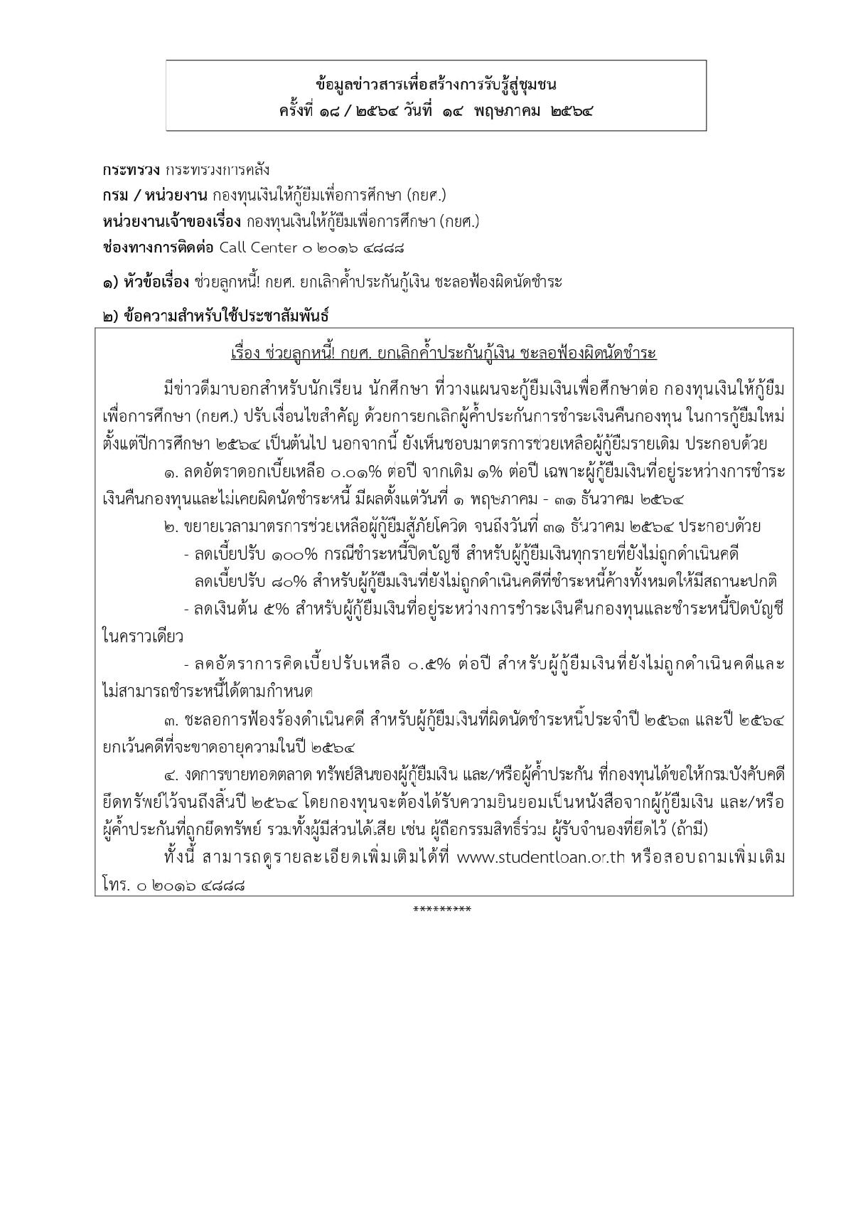ประชาสัมพันธ์ข้อมูลเพื่อสร้างการรับรู้สู่ชุมชน 18/2564