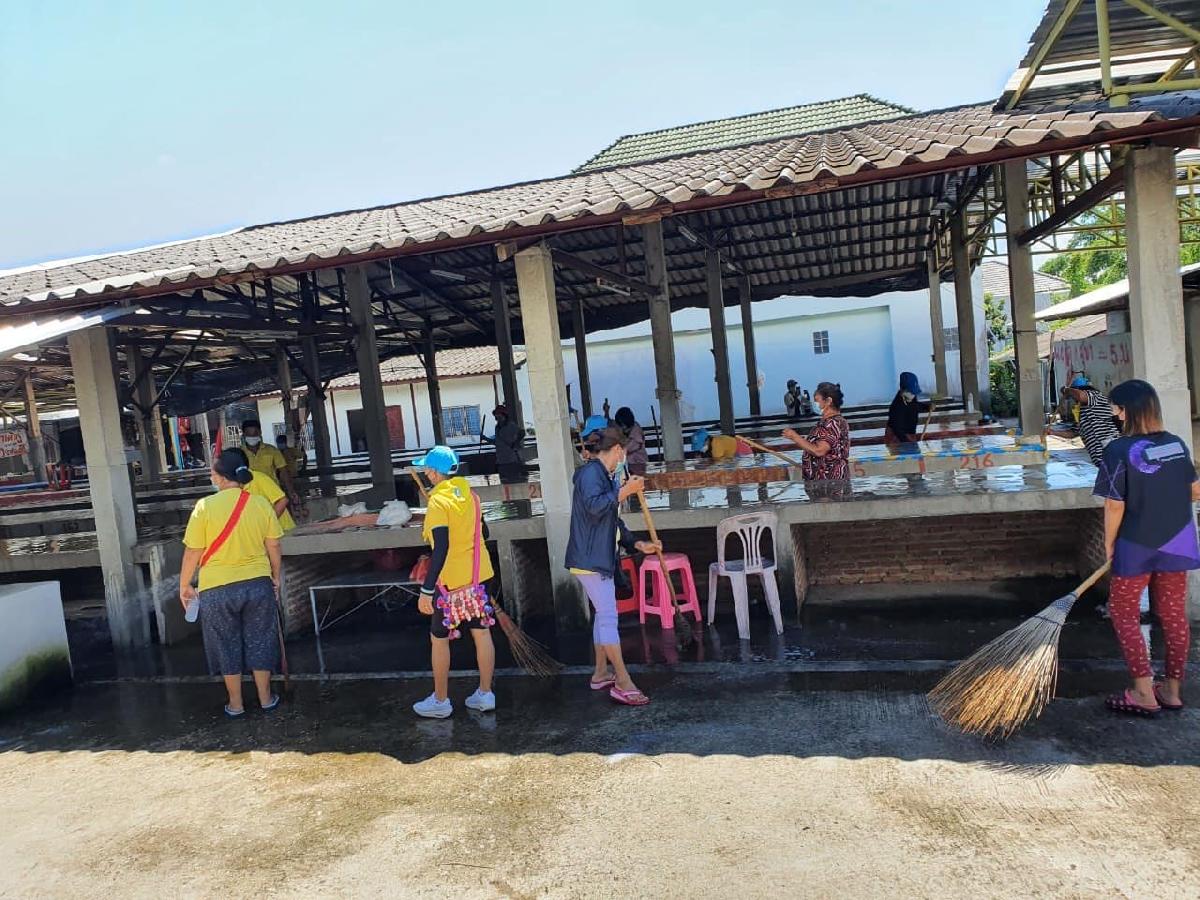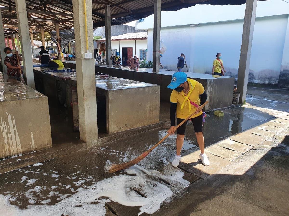 วันจันทร์ ที่ 30 สิงหาคม พ.ศ.2564 เวลา 10.00 น. นายแดนชัย บุลมาก นายกองค์การบริหารส่วนตำบลโป่งงาม ได้มอบหมายให้งานบริการสาธารณสุข พร้อมทั้งเจ้าหน้าที่งานป้องกันและบรรเทาสาธารณภัย ร่วมกับประชาชนในพื้นที่บ้านถ้ำสันติสุข หมู่ที่ 4 ต.โป่งงาม ดำเนินการกวาดล้างทำความสะอาดตลาดสดบ้านถ้ำสันติสุข หมู่ที่ 4 ตามมาตรการป้องกันและควบคุมการแพร่ระบาดโรคติดเชื้อไวรัสโคโรน่า 2019 เพื่อลดโอกาสการแพร่ระบาดของเชื้อไวรัสโควิด-19 เนื่องจากเป็นแหล่งชุมชนและมีประชาชนมาใช้บริการเป็นจำนวนมาก