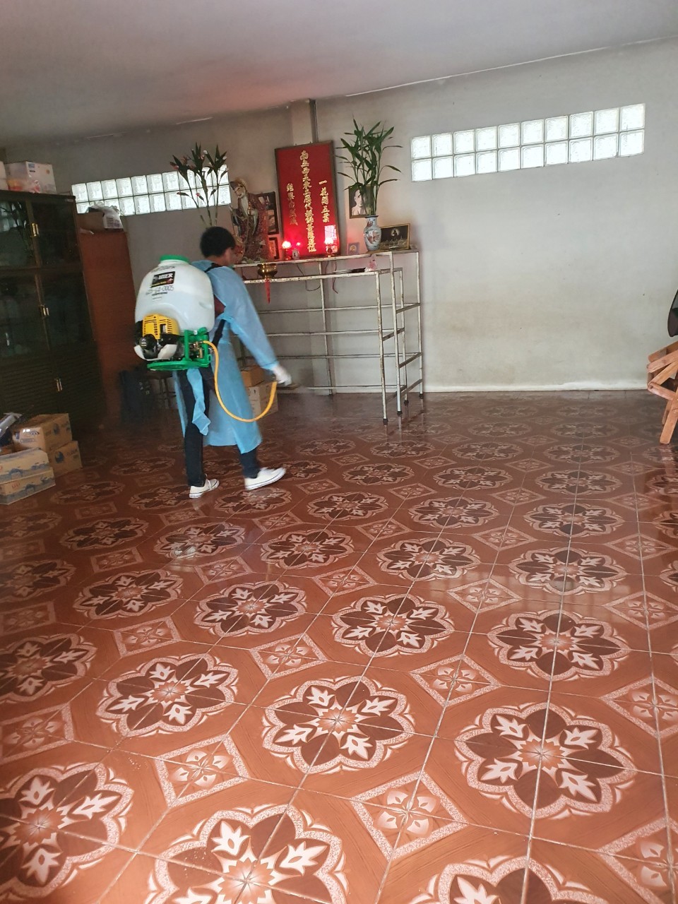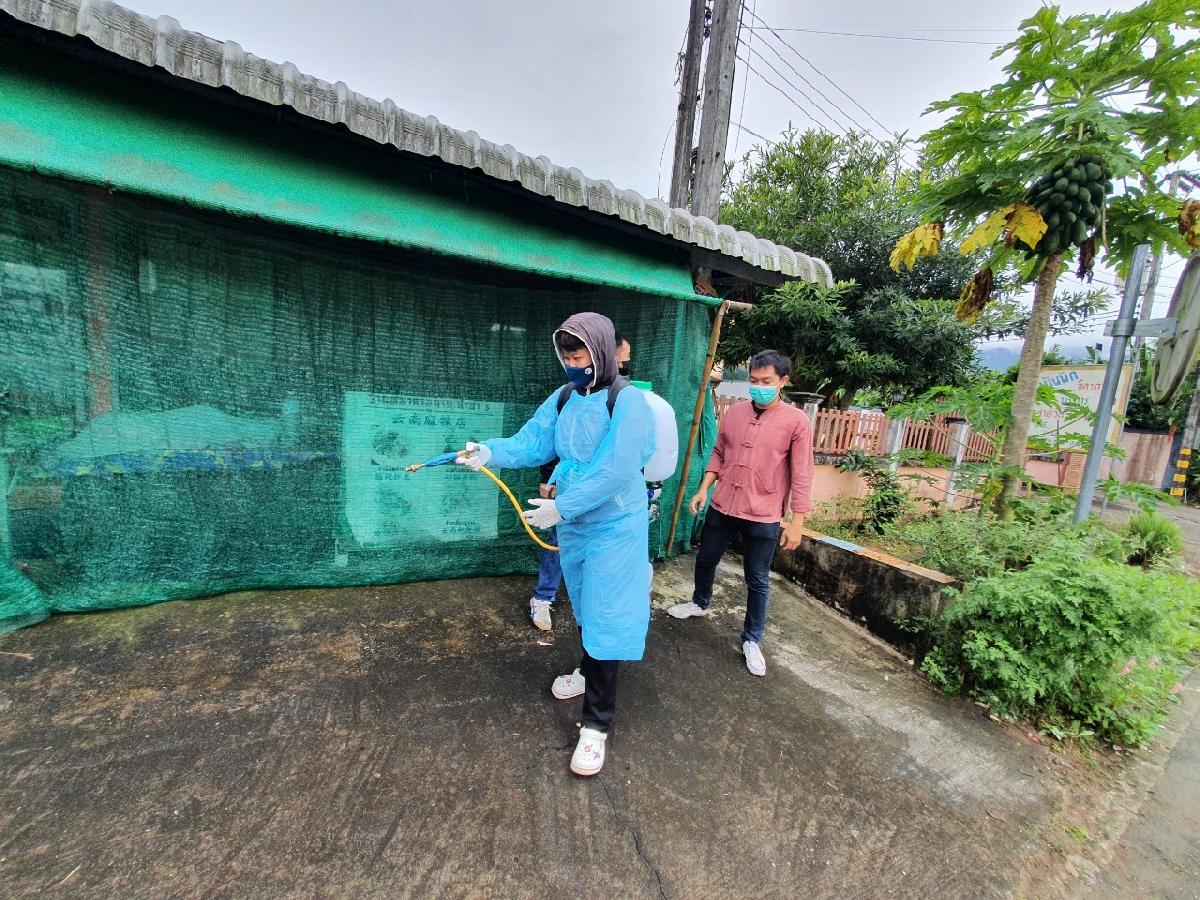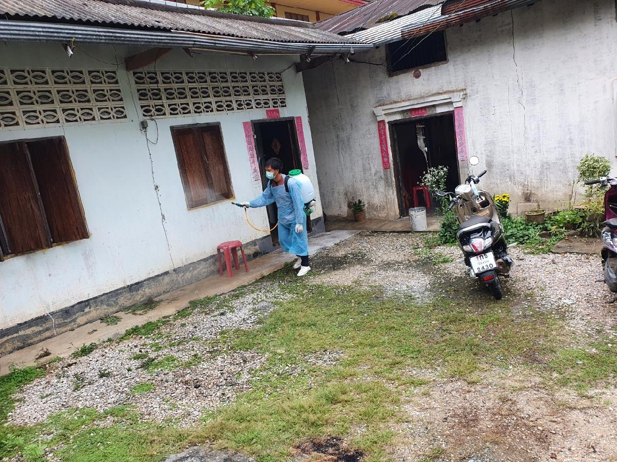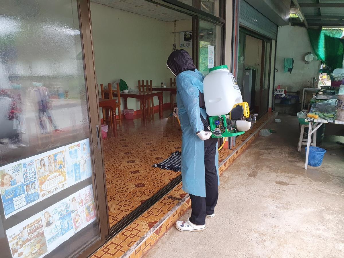 ออกพ่นยาฆ่าเชื้อเพื่อป้องกันการแพร่ระบาดของโรคโควิด-19 ในพื้นที่ วัดเจ้าแม่กวนอิม ม.4 เเละบ้านผู้ติดเชื้อ ม.3