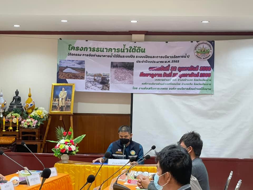 วันอังคาร ที่ 22 เดือน กุมภาพันธ์ 2565 เวลา 09.00 น. องค์การบริหารส่วนตำบลโป่งงาม โดยงานส่งเสริมการเกษตร ได้จัดอบรม โครงการธนาคารน้ำใต้ดิน (กิจกรรม อบรมการจัดทำธนาคารน้ำใต้ดินระบบปิด ระบบเปิด และการบริหารจัดการน้ำ) ประจำปีงบประมาณ พ.ศ. 2565 ณ ห้องประชุมเก้ายอด องค์การบริหารส่วนตำบลโป่งงาม โดยมี นายธารินทร์ ฝั้นคำสาย นายกอบต.โป่งงาม เป็นประธานพิธีเปิด และมีผู้เข้าร่วมอบรม ได้แก่ สมาชิกสภา อบต.โป่งงาม กำนัน ผู้ใหญ่บ้าน ผู้ช่วยผู้ใหญ่บ้าน คณะกรรมการ ศบกต.โป่งงาม กลุ่มประชาชนผู้ใช้น้ำตำบลโป่งงาม และ พนักงานเจ้าหน้าที่ อบต.โป่งงาม และได้รับเกียรติ นายไพโรจน์ แอบยิ้ม เจ้าหน้าที่โครงการชลประทานจังหวัดเชียงราย และนายณรงค์ เขื่อนคำแสน ประธานสภาเกษตรอำเภอแม่สาย เป็นวิทยากรในการฝึกอบรม ทั้งนี้เพื่อให้ผู้เข้าร่วมการอบรมและศึกษาดูงาน ได้รับความรู้ในการจัดทำธนาคารน้ำใต้ดิน สามารถนำความรู้ไปเผยแพร่ให้กับประชาชนในพื้นที่ และมีการบริหารจัดการน้ำเพื่อการอุปโภค บริโภคได้ แก้ไขปัญหาการขาดแคลนน้ำในฤดูแล้ง แก้ปัญหาน้ำท่วมขังในฤดูฝน เพื่อความอุดมสมบูรณ์ของพื้นที่ตำบลโป่งงาม