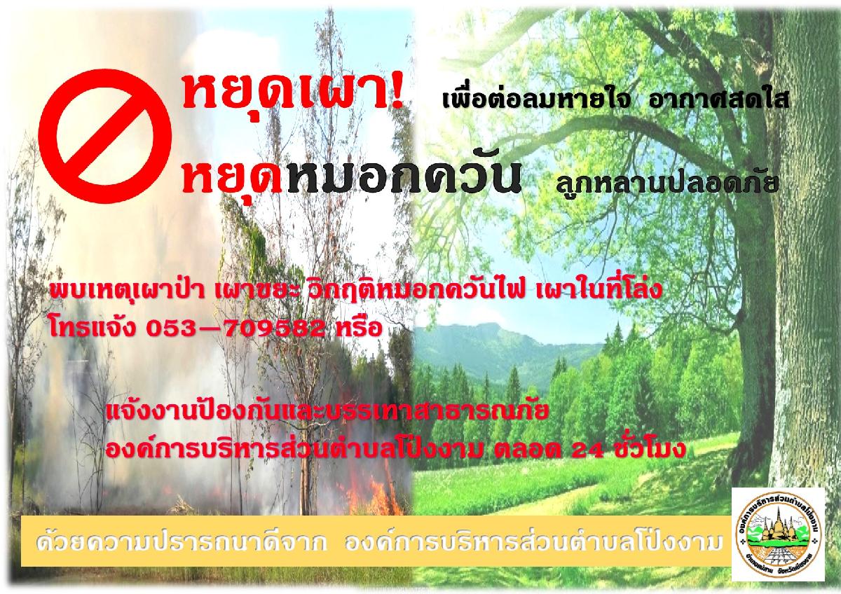 องค์การบริหารส่วนตำบลโป่งงาม รณรงค์ให้ประชาชนลดการเผาในที่โล่งแจ้งลดมลพิษทางอากาศ ขอความร่วมมือประชาชนปรับเปลี่ยนพฤติกรรมเดิมที่สร้างมลภาวะทางอากาศ นายแดนชัย บุลมาก นายกองค์การบริหารส่วนตำบลโป่งงาม กล่าวถึงการตอบรับนโยบายของทางจังหวัดเชียงรายในเรื่องการรณรงค์ลดการเผาในที่โล่งแจ้งทุกประเภท โดยทางองค์การบริหารส่วนตำบลโป่งงาม ได้ดำเนินการอย่างต่อเนื่องตลอดมา เพื่อร่วมลดมลพิษทางอากาศในจังหวัดเชียงรายที่เป็นปัญหาสำคัญที่ทุกภาคส่วนต้องร่วมกันแก้ปัญหา ซึ่งพฤติกรรมการเผาในที่โล่งแจ้งทำให้เกิดปัญหาแก่ประชาชนที่ป่วยเป็นโรคระบบทางเดินหายใจ โรคหอบหืด โรคภูมิแพ้ โรคหลอดเลือดหัวใจตีบ โดยเฉพาะสร้างปัญหาในการใช้เส้นทางสัญจร และอาจก่อให้เกิดไฟไหม้ลุกลามสร้างความเสียหายแก่ชีวิตและทรัพย์สินของประชาชน อีกทั้งส่งผลกระทบต่อการท่องเที่ยวของจังหวัดเชียงรายด้วย โดยแนวทางแก้ไขได้จัดอบรมให้ความรู้แก่อาสาสมัครพิทักษ์สิ่งแวดล้อมให้มีส่วนร่วมขยายผลให้ประชาชนในชุมชนได้ตระหนักถึงเรื่องดังกล่าว และปรับเปลี่ยนพฤติกรรมดั้งเดิมที่ชอบเผาขยะให้หมดไป อาทิ - พฤติกรรมการเผาเศษวัชพืชตอซังข้าวหลังการเก็บเกี่ยวผลผลิตของเกษตรกร - พฤติกรรมเผาวัชพืชในที่รกร้างว่างเปล่าเพื่อทำประโยชน์ทางด้านการเกษตรทำไร่เลื่อนลอย - พฤติกรรมการเผาเพื่อหวังผักหวานและเห็ดเผาะ - พฤติกรรมเผากิ่งไม้ใบไม้ตามบ้านเรือน - พฤติกรรมเผาหญ้าสดเพื่อไล่ยุงหรือแมลง - การเผาศพแบบดั้งเดิมที่ใช้เมรุแบบเปิดและใช้ปราสาทที่มีพลุควันไฟหลายสี ซึ่งหลายพฤติกรรมเป็นการทำสืบทอดกันมาโดยไม่ได้ตระหนักถึงผลเสียที่เกิดขึ้นต่อสภาวะอากาศ ที่ต้องใช้เวลาในการปรับเปลี่ยน องค์การบริหารส่วนตำบลโป่งงาม จึงขอความร่วมมือประชาชนให้ช่วยกันดูแลสภาพอากาศในตำบลโป่งงามของเรา ให้ประชาชนตำบลโป่งงามได้อาศัยอยู่อย่างมีความสุขและปลอดภัยจากมลพิษ หมอกควัน และส่งเสริมให้นักท่องเที่ยวเลือกมาเที่ยวจังหวัดลำปางกันมากขึ้น และหากพบเหตุเผาขยะ เผาในที่โล่งแจ้ง สามารถแจ้งเหตุได้ที่ โทรศัพท์ 053-709582 งานป้องกันและบรรเทาสาธารณภัย