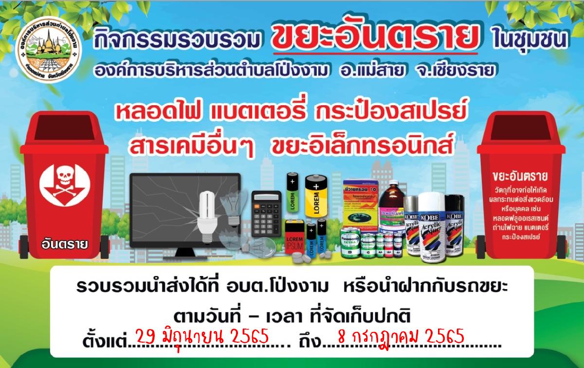 กิจกรรมรวบรวมขยะอันตรายในชุมชน ตั้งแต่วันพุธ ที่ 29 มิถุนายน - วันศุกร์ ที่ 8 กรกฎาคม 2565