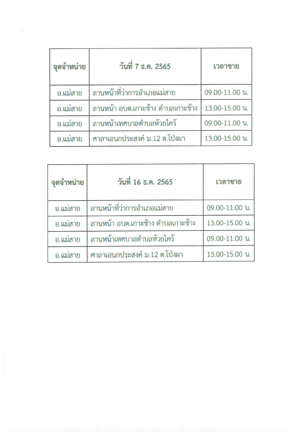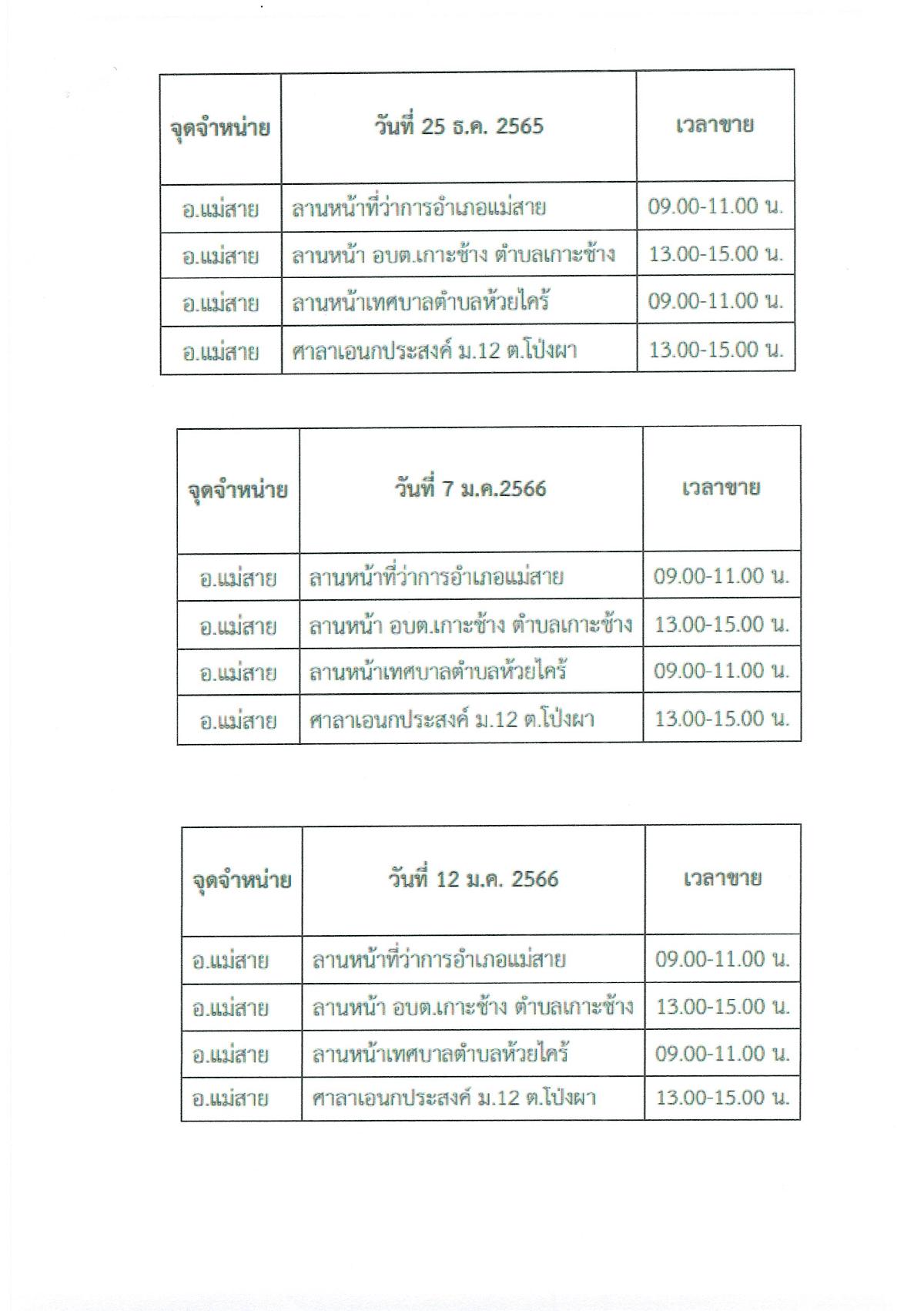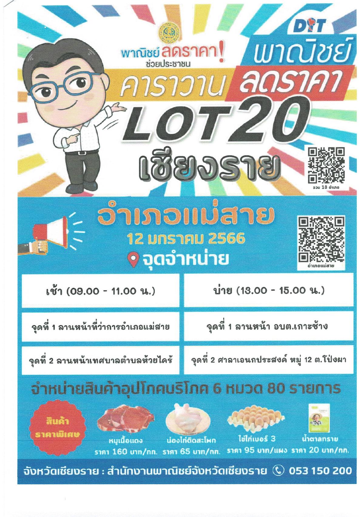 ประชาสัมพันธ์ โครงการพาณิชย์ .... ลดราคา! ช่วยประชาชน ปี 2565 (งวดที่ 3 ) ภายใต้ชื่อ "พาณิชย์...ลดราคา! Mobile ทั่วไทย Lot 20 ภูมิภาค" จังหวัดเชียงราย วันและเวลา จุดจำหน่าย ตามเอกสารแนบค่ะ