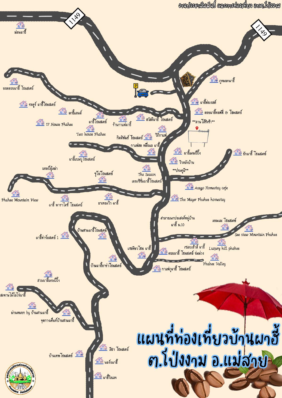 แจกพิกัด แผนที่ท่องเที่ยวบ้านผาฮี้