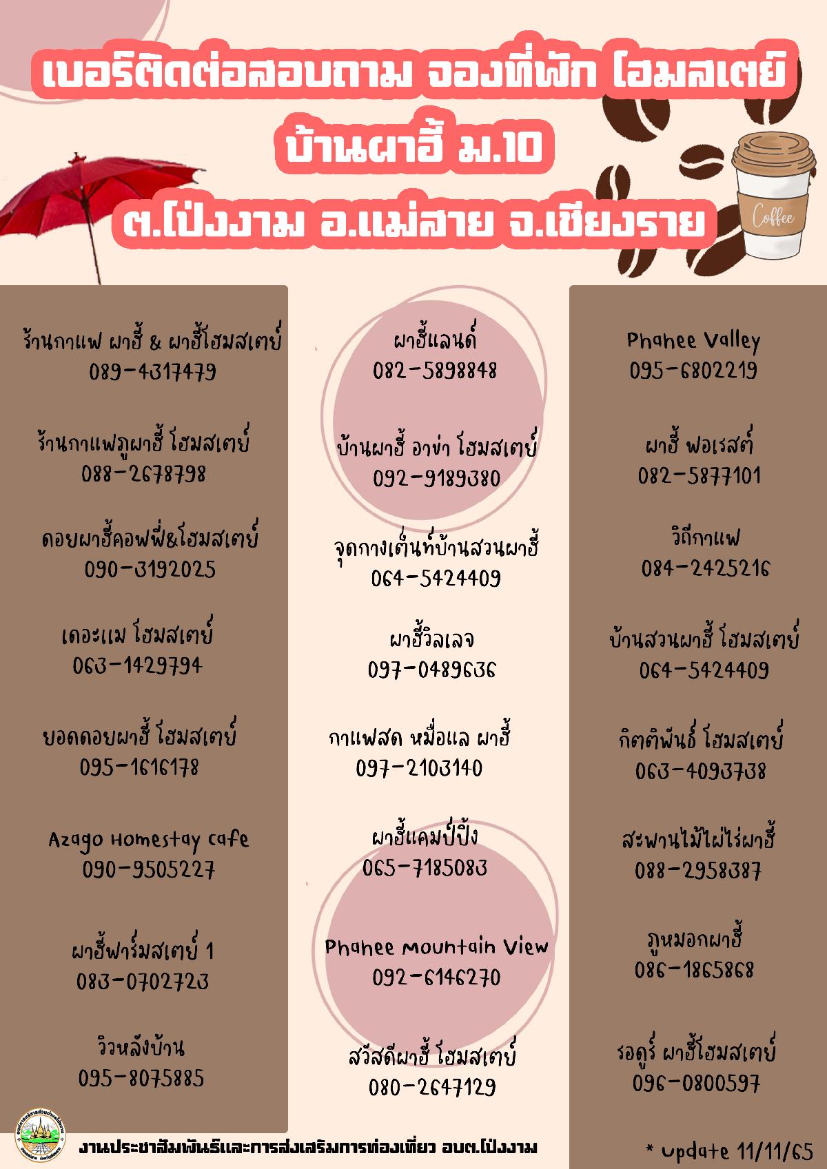 งานประชาสัมพันธ์ และส่งเสริมการท่องเที่ยว อบต.โป่งงาม ได้รวบรวมที่พัก โฮมสเตย์ บ้านผาฮี้ มาให้ทุกท่านค่ะ