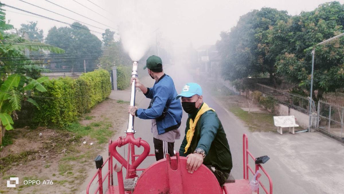 นางสาวศิริพรรณ จันทร์เขียว รองปลัดฯ รักษาราชการแทนปลัด อบต.โป่งงาม ได้มอบหมายให้เจ้าหน้างานป้องกันฯ อบต.โป่งงาม นำรถบรรทุกน้ำออกฉีดพ่นละอองน้ำ ในพื้นที่ตำบลโป่งงาม ร่วมกับ ทหารในพื้นที่ตำบลโป่งงาม